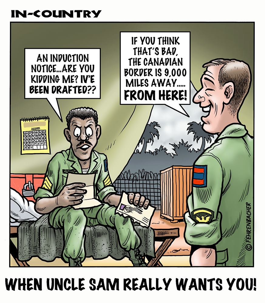 Phil enlisted in the Army in 1965 where he served for years in Vietnam. He became a graphic designer and has worked for the state of Oregon for 26 years. He retired in 2003 and started the Cartoon "In-Country". The cartoons reflect his experiences during his tour of duty in South Vietnam.