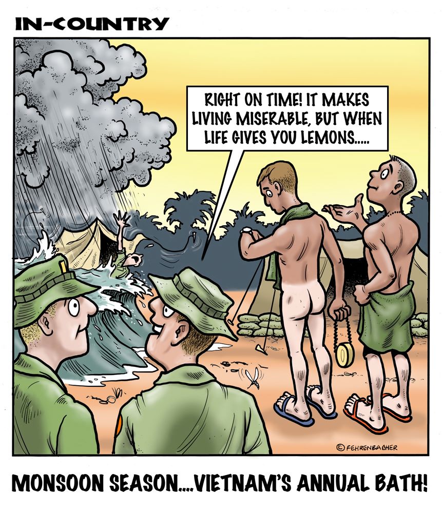 Phil enlisted in the Army in 1965 where he served for years in Vietnam. He became a graphic designer and has worked for the state of Oregon for 26 years. He retired in 2003 and started the Cartoon "In-Country". The cartoons reflect his experiences during his tour of duty in South Vietnam.