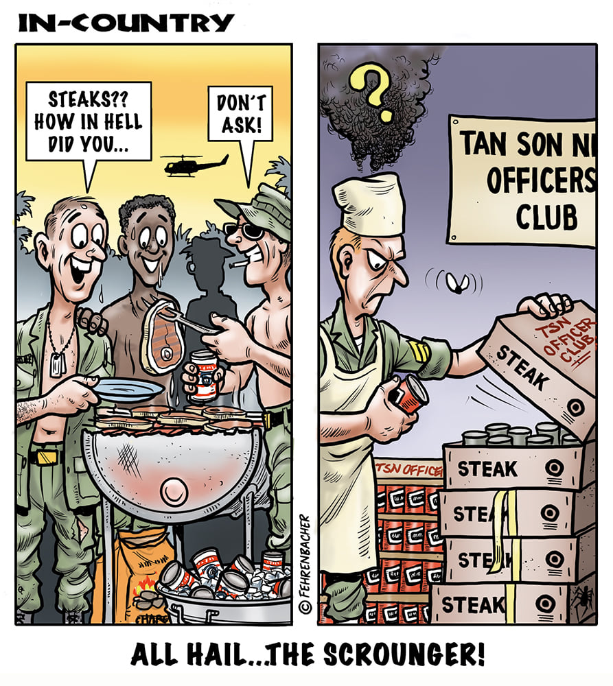 Phil enlisted in the Army in 1965 where he served for years in Vietnam.  He became a graphic designer and has worked for the state of Oregon for 26 years.  He retired in 2003 and started the Cartoon "In-Country".  The cartoons reflect his experiences during his tour of duty in South Vietnam.